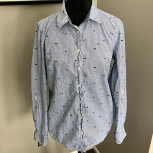 Tommy Hilfiger size medium long sleeve button down with stripes and bow tie print.