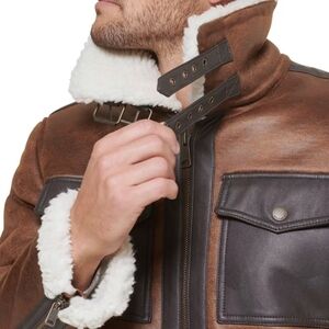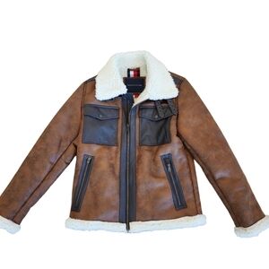 Tommy Hilfiger mens Faux Leather Shortie Rancher Jacket with Fleece Accents