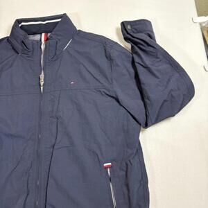 Tommy Hilfiger mens jacket XL Navy Full Zip Hooded Windbreaker Retro Y2K Street