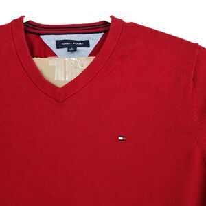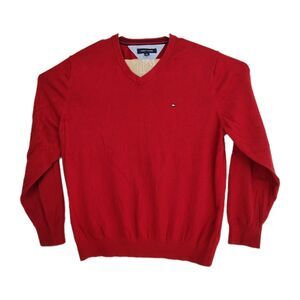 Wrap yourself in the classic comfort of Tommy Hilfiger with this men's v-neck pullover sweater. Designed for the style-conscious, it comes in a bold red, ensuring you stand out with a pop of color. The long sleeves and tight-knit cotton material provide warmth and durability, perfect for layering or wearing on its own.