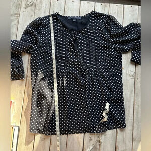 Tommy Hilfiger| navy and white polka dot| sheer lined| blouse| M