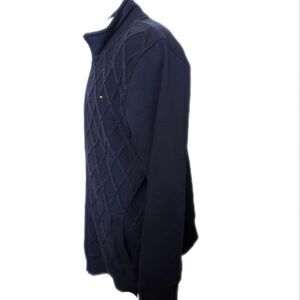 Tommy Hilfiger navy blue full zip front sweater, 60% cotton, size XL