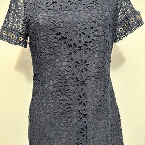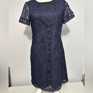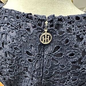 Tommy Hilfiger navy lace dress with accent on sleeves. Size 4