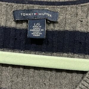 Tommy Hilfiger navy/gray striped sweater Sz L. Excellent Condition
