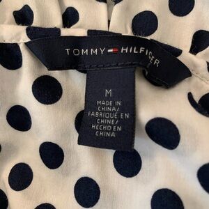 Tommy Hilfiger white/navy polka dot sleeveless blouse with ruffles..100% cotton fabric…nice cool top for summer..