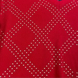 Tommy Hilfiger red long sleeve with gold studded sweater size Medium