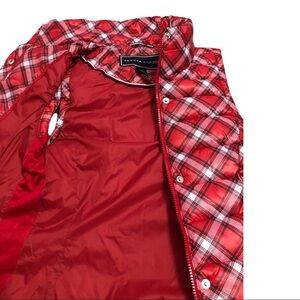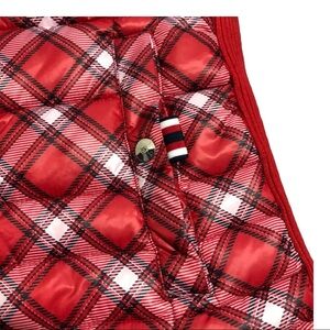 Tommy Hilfiger holiday inspired red plaid tufted puffy winter vest. New