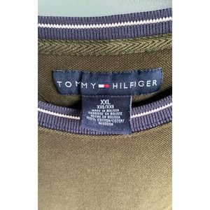Tommy Hilfiger men’s short sleeve T. Pique knit in Army green and navy color-way. crest logo on chest. Size XXL
