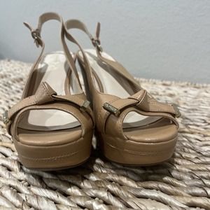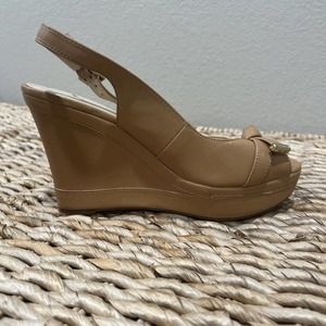 Tommy Hilfiger shoes women’s size 9.5 Brown peep toe slingback platform bow gold