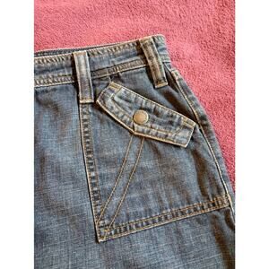 Tommy Hilfiger short denim skirt size 10, zipper front, buttoned pockets