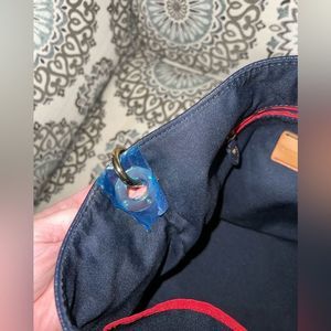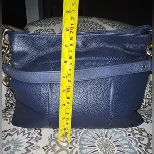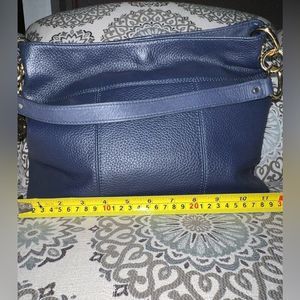 Tommy Hilfiger shoulder bag, new without tags. Never used as you can see in the pictures. Beautiful Blue! Measurements in pictures. Still has plastic on the inner circles of the bag shown in the picture. Comes from a smoke free home.
