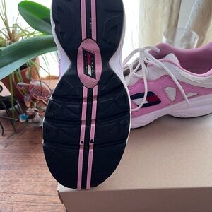 Casually worn Tommy Hilfiger size 9 pink and white running tennis shoes.