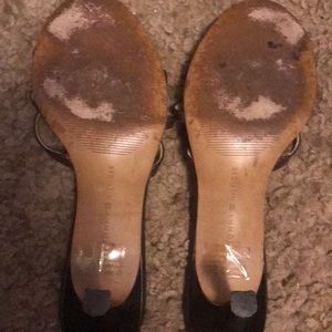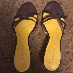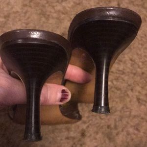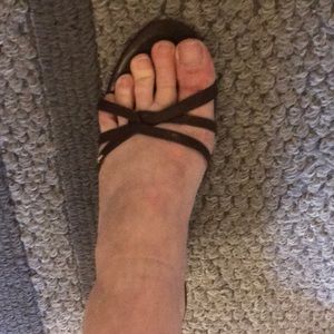 Light, strappy leather sandals with a slight heel. I rubbed a little too hard when cleaning them up and rubbed some of the yellow sole off. I hade a home repair. See photo