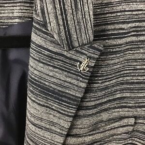 Tommy Hilfiger stretch fitted polyester blend blazer with elbow patches. Sz 12. GUC with little sign of wear. One button closure. Breast and two hip pockets. Pockets still basted closed. Fully lined. Cute anchor pin on lapel. Black elbow patches. Nice blazer.