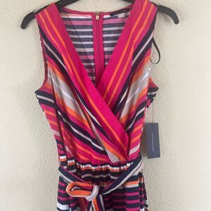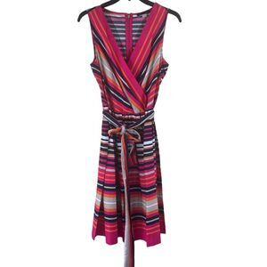 Tommy Hilfiger striped fit and flare cotton dress with belt size 6 Small