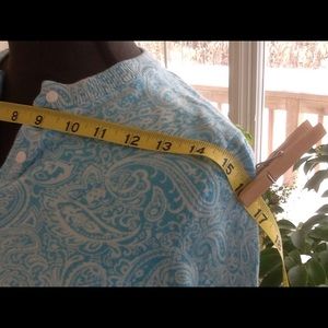 Tommy H white paisley print on teal background sweater. Size medium, but see measurements for sizing. Great condition!