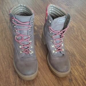 Tommy Hilfiger sz 10 Brown red plaid Lace Up Bootie chunky block heel
