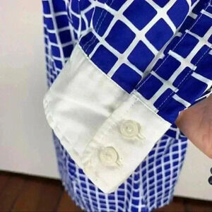 Tommy Hilfiger womens top size L Blue white window pane checkered button down career
