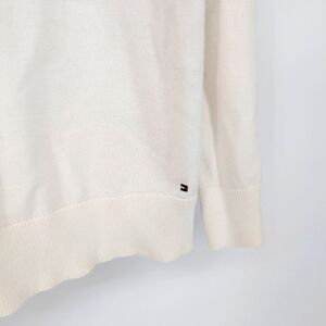 Stay cozy and stylish with this classic Tommy Hilfiger turtleneck sweater. Featuring a chic color-blocked design with navy and red stripes on a crisp white background, this sweater offers a bold yet timeless look.