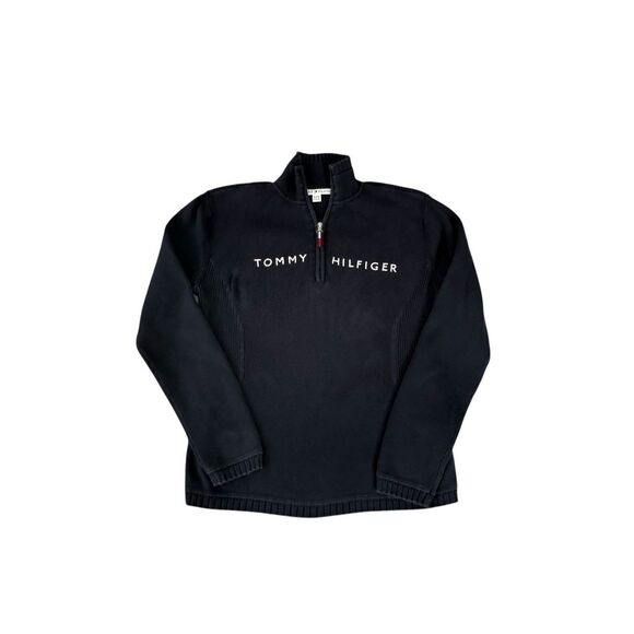 Tommy Hilfiger vintage Sweater Women Navy Blue 1/4 Zip Rib Pullover sz XL cotton