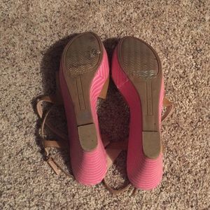 Brown leather wedges with a fun pink/tan stripe on the wedge. Only worn twice.