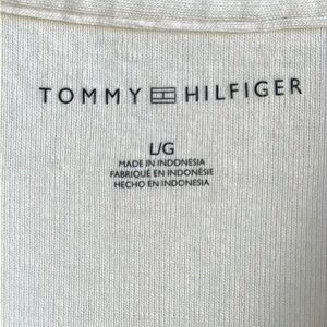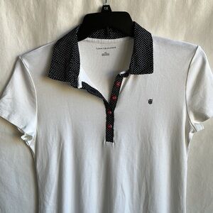 Tommy Hilfiger white cotton midi dress with polka dot neckline, size L. Good preowned condition. Smart and classic.