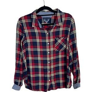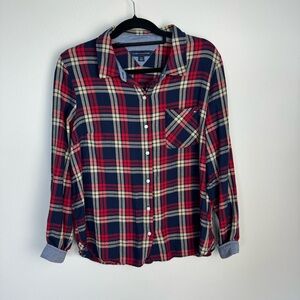 Tommy Hilfiger woman long sleeve button down plaid shirt size L