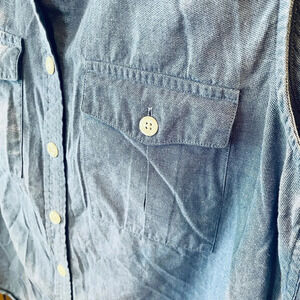 Tommy Hilfiger women sleeveless button cotton chambray top 8 blue coastal beach