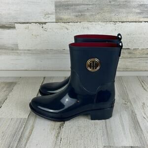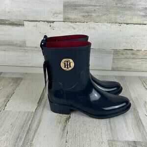 Tommy Hilfiger womens 5 navy blue ankle rain boots new waterproof low heel