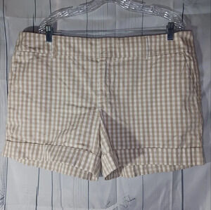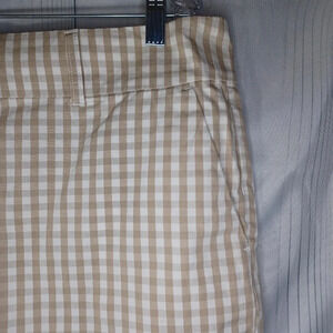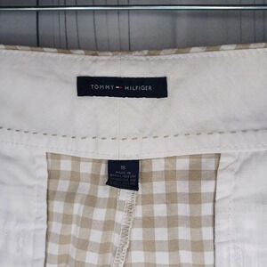 Tommy Hilfiger tan and white checkered shorts.