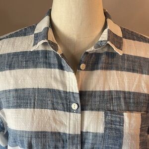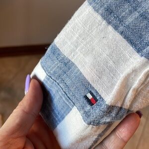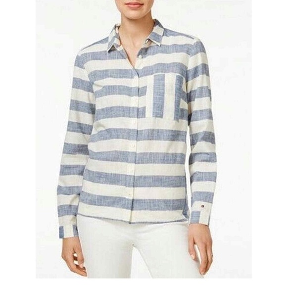 Tommy Hilfiger women’s contrast bold stripe button down shirt cotton classic Lrg