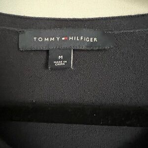 Tommy Hilfiger women’s size medium navy and white long sleeved argyle v-neck top EUC
