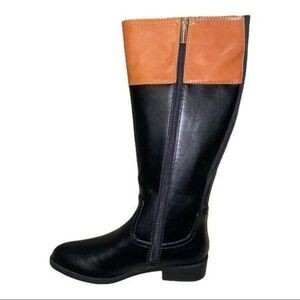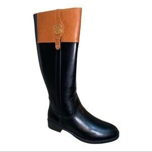 Tommy Hilfiger Black Brown Two Tone Imina Faux Leather Riding Boots 6M NWT