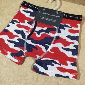 Elevate your child's essentials with this 2 pack of Tommy Hilfiger boxer briefs, featuring a striking red white and blue camo print and a solid gray option. Crafted for a snug fit, they offer both style and comfort, making them a must-have accessory for any wardrobe.