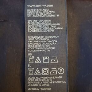 ~ Description: Navy blue skirt with white piping, button front, 2 front pockets, back pockets are faux , stretchy material