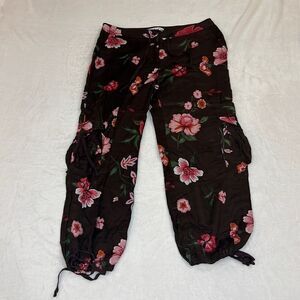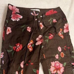 Tommy Hilfiger Chocolate Brown Cargo Pants with Floral Print - Size 8