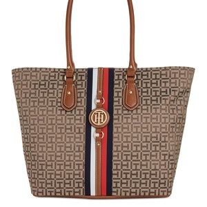 Brand NEW extra Large Tommy Hilfiger Tote Bag Chic, heritage-inspired details contribute to the upscale look of a capacious Tommy Hilfiger tote designed to handle it all in monogram jacquard.