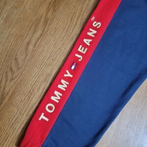 Tommy Hilfiger Jeans French Terry Pants Joggers Men's Small S Navy Blue Red Gold.