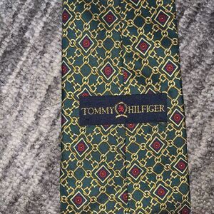 Tommy Hilfiger Mens 100% Italian Silk Chainlink Pattern Neck Tie Green Gold Red