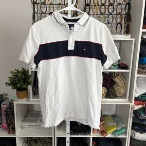 Tommy Hilfiger Men's White and Navy Polo Shirt men’s medium