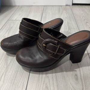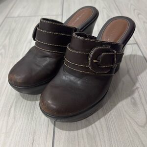 Tommy Hilfiger Millie clog heels brown buckle size 8