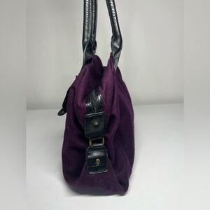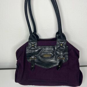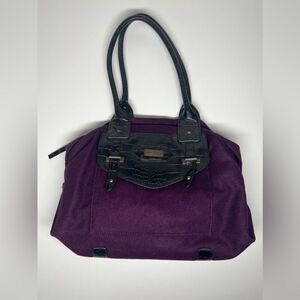 Tommy Hilfiger Solid Purple w/ Black Leather Double Handles Tote Purse