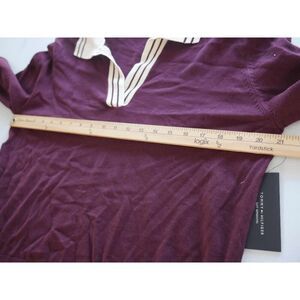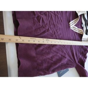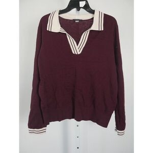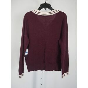 Keywords: Tommy Hilfiger XL sweater, cotton knit top for women, Johnny collar v-neck sweater, burgundy pullover top, preppy striped collar sweater, fall winter cotton knitwear, business casual knit top