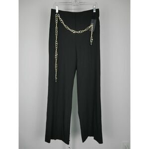 Tommy Hilfiger Women’s Black Chain Belt Wide-Leg Trousers Size 14 Work Pants