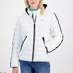 Stay cozy and stylish with this women's hooded puffer jacket from Tommy Hilfiger, perfect for braving the cold in comfort and chic fashion.