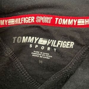 Tommy Hilfiger Women's Sports Hoodie Sweatshirt Kangaroo Pockets Black Medium. Adjustable Hood with Drawstring. Long Sleeve, Pullover. Solid Plain Pattern.