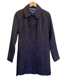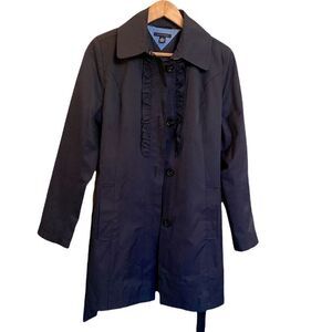 Tommy Hilfiger Women’s Navy Blue Trench Coat Ruffle Detail Size Medium