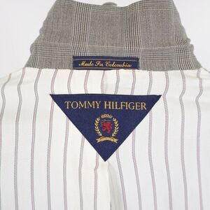 Tommy Hilfiger Worsted Wool Tan Plaid W/ Blue Windowpane 40R 2 Button Sport Coat