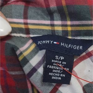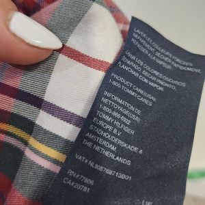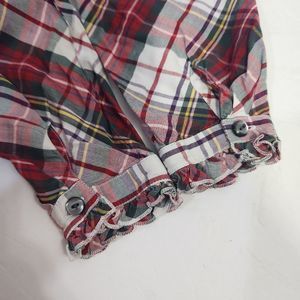 Tommy Hilfiger plaid red green white ruffle button down long sleeve blouse small