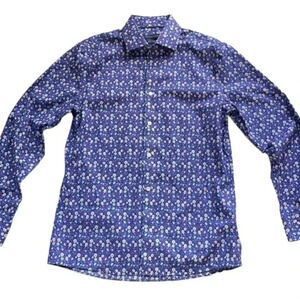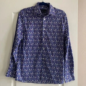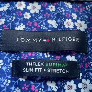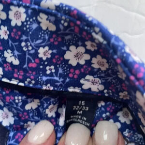 Tommy Hilfiger slim fit stretch cotton button down. Floral print. Blue, purple, white. Men’s size 15 32/33. Excellent condition! See pictures for measurements